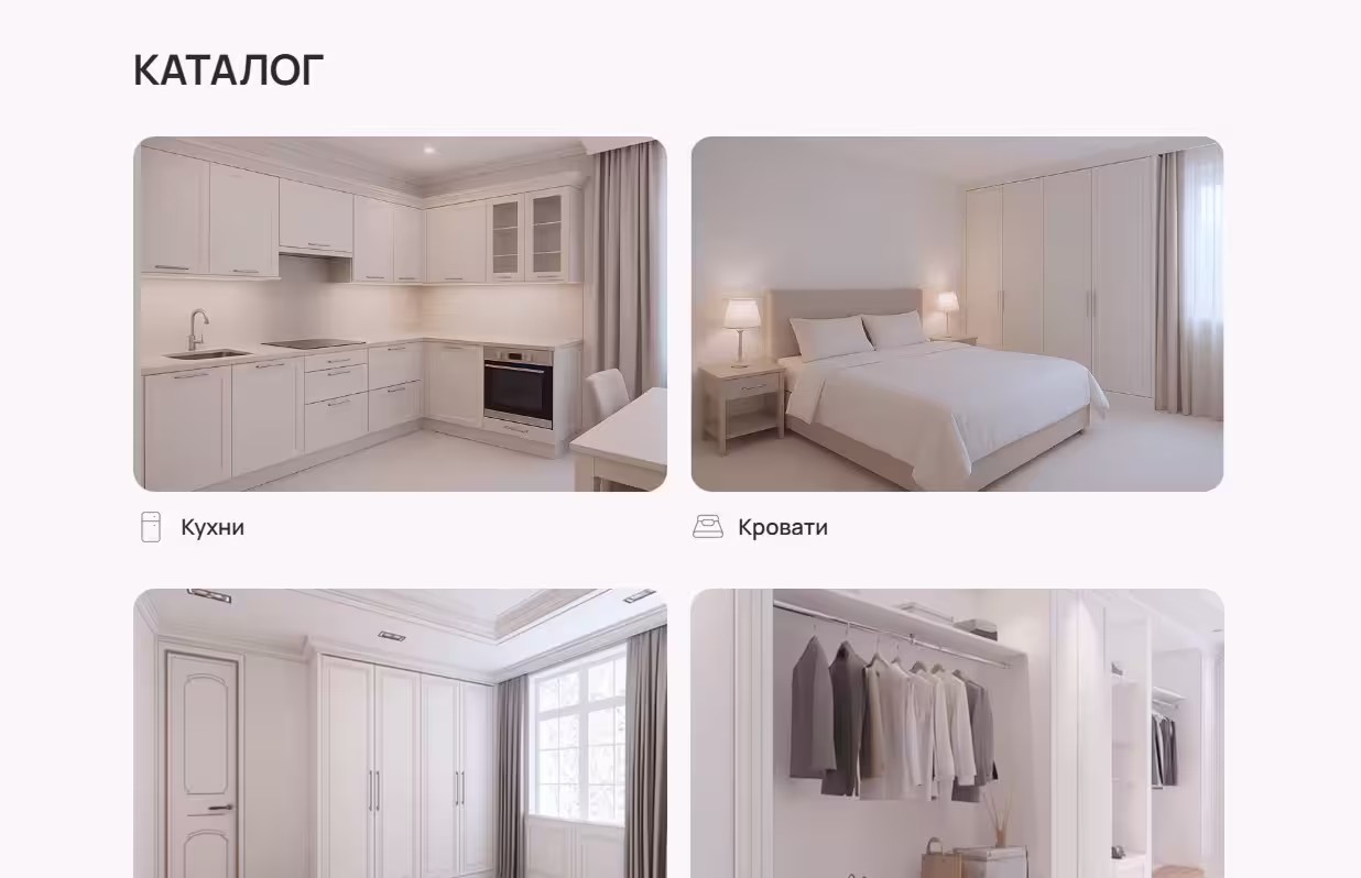 Спроектировали удобный каталог с фильтрами и интуитивную навигацию, что позволяет быстро найти подходящую мебель. Визуально насыщенный дизайн с качественными фотографиями и лаконичными описаниями выгодно представляет продукцию и укрепляет доверие к бренду.