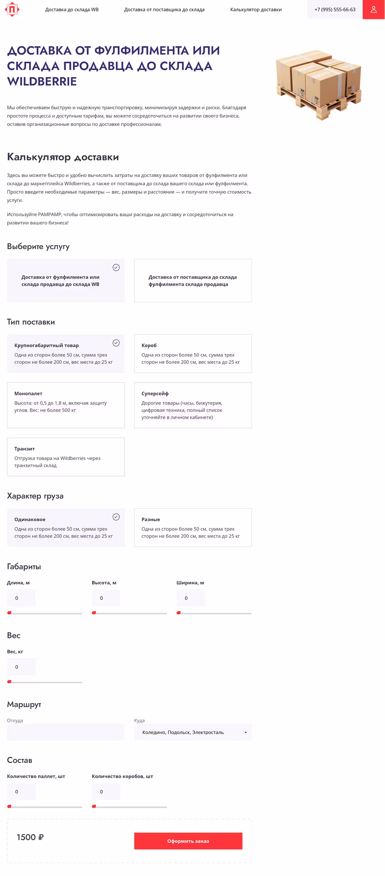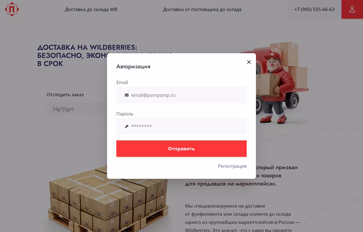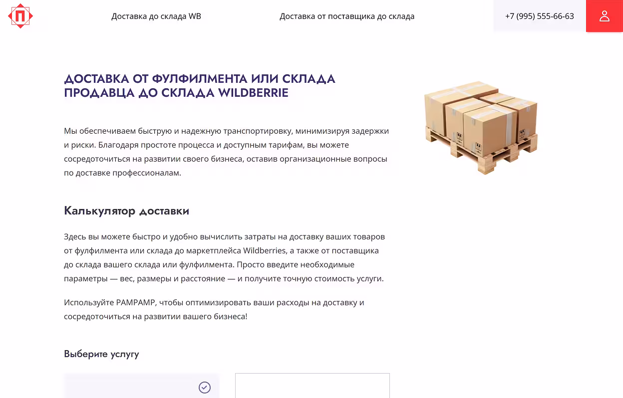 PAMPAMP — сайт сервиса доставки на Wildberries: два сценария, расчёт и отслеживание онлайн.